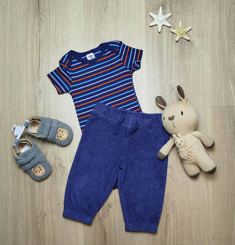 ۶تا۹ماه: قدبادی ۴۴/ قد سوئیشرت ۳۱ ، پهنا ۲۸/ قد شلوار۳۸