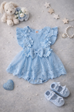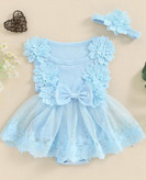 بادی مجلسی فوق العاده شیک و مد روز دخترانه آبی گلدار توری با آستر بسیار نرم و لطیف و مهربان با کودک دلبندتان
