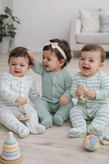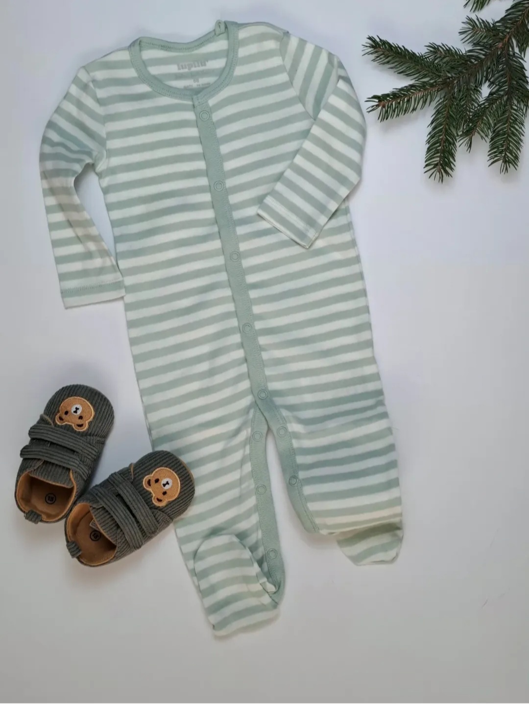 راه راه افقی سبز و سفید 9 تا 12 ماه : سرشانه تا مچ پا 63 / سرشانه تا فاق 43 / پهنا 27